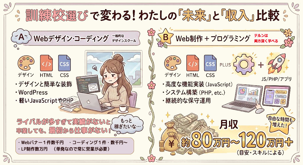 比較項目一般的なWebスクールテルンの稼ぐための教育