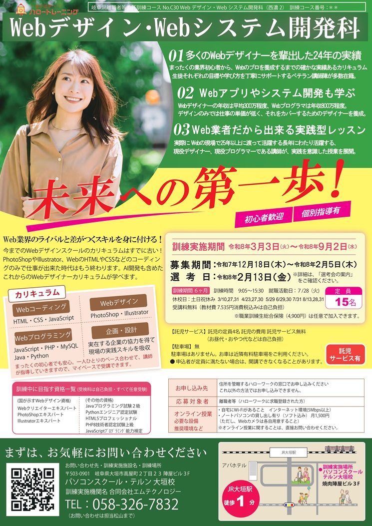 テルンでは、その一歩上をいくスキルを身に付け、Webデザインにおける時代の流れを感じ取りながらカリキュラムを変化させ、しっかりと収益を上げられるデザイナーの養成を行っております。