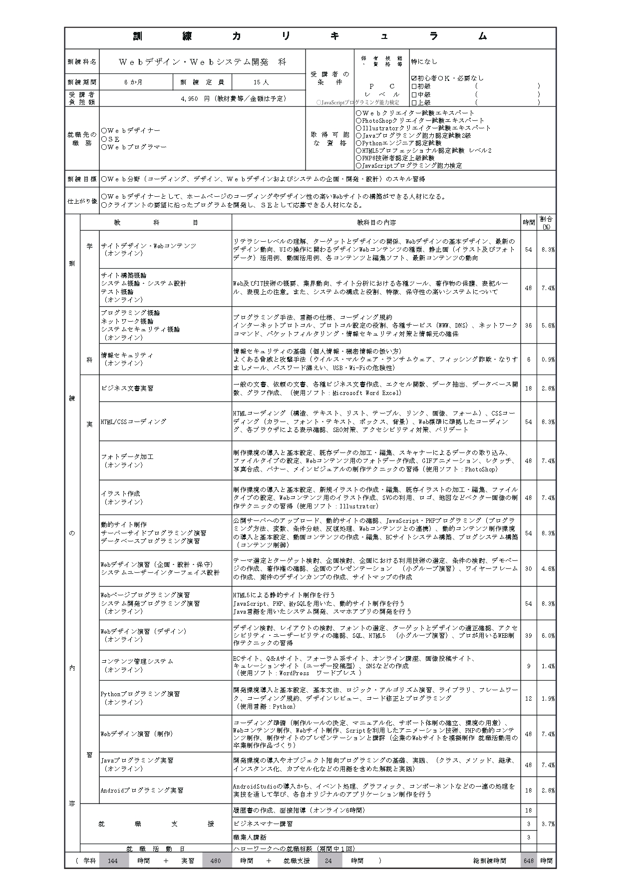 通学とオンラインをバランスよく組み合わせた訓練システム。