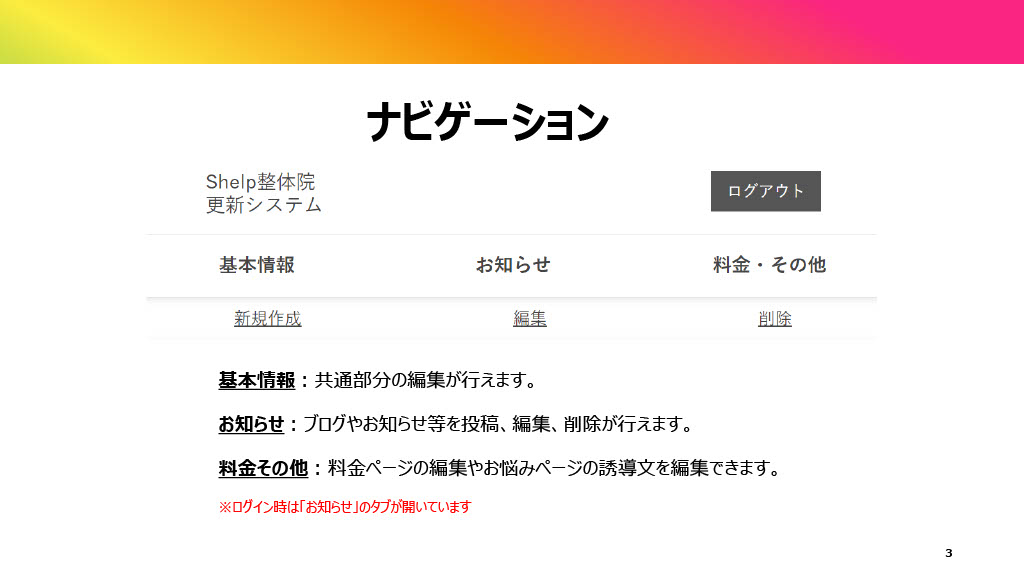 店舗サイトの運用効率化を目的とした管理画面(CMS)を設計・実装。