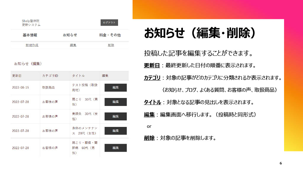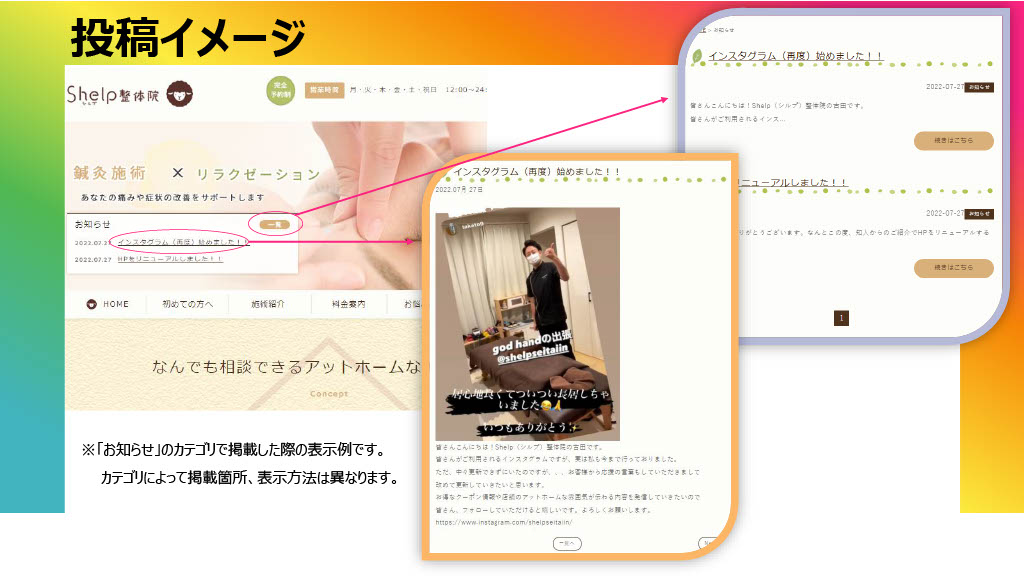 お知らせ・ブログ・FAQ・お客様の声・取扱商品などをカテゴリ別に管理できる投稿機能を構築しました。