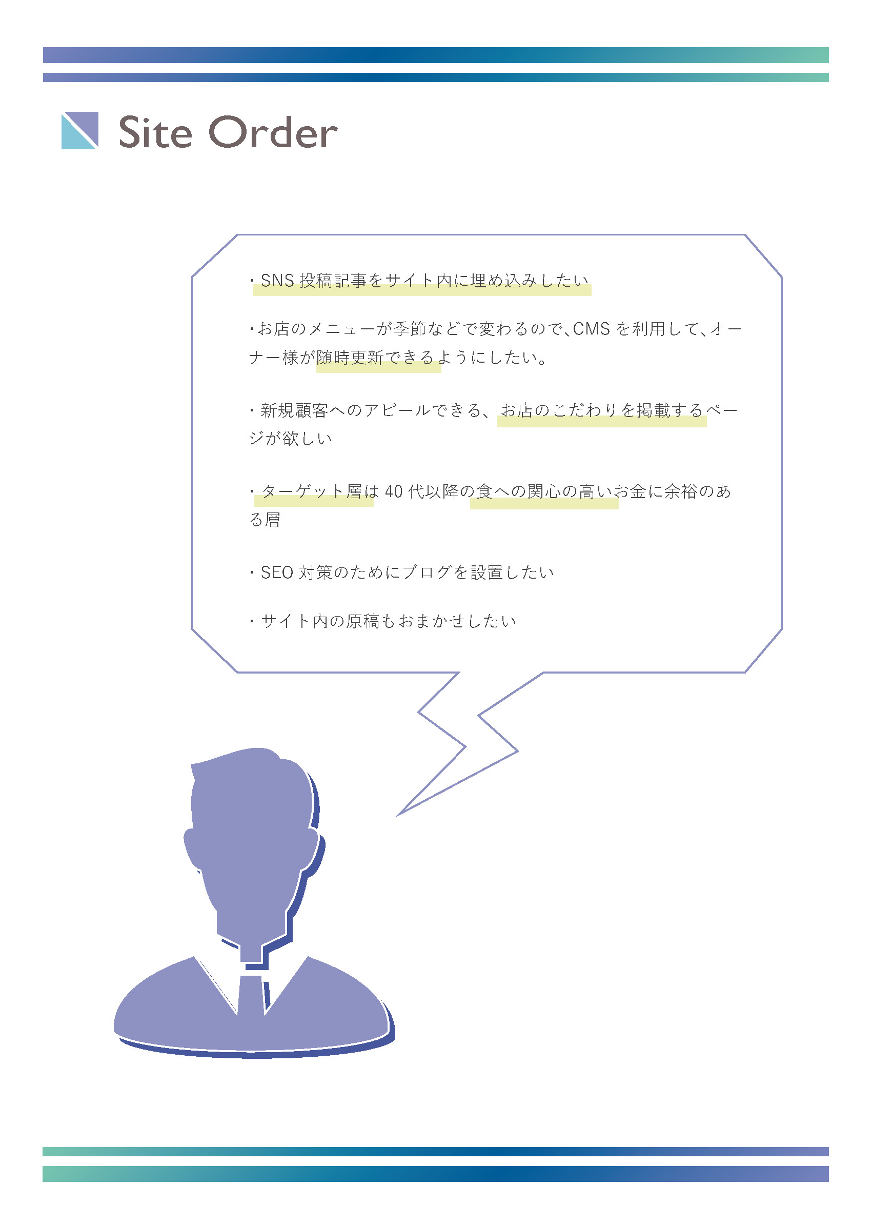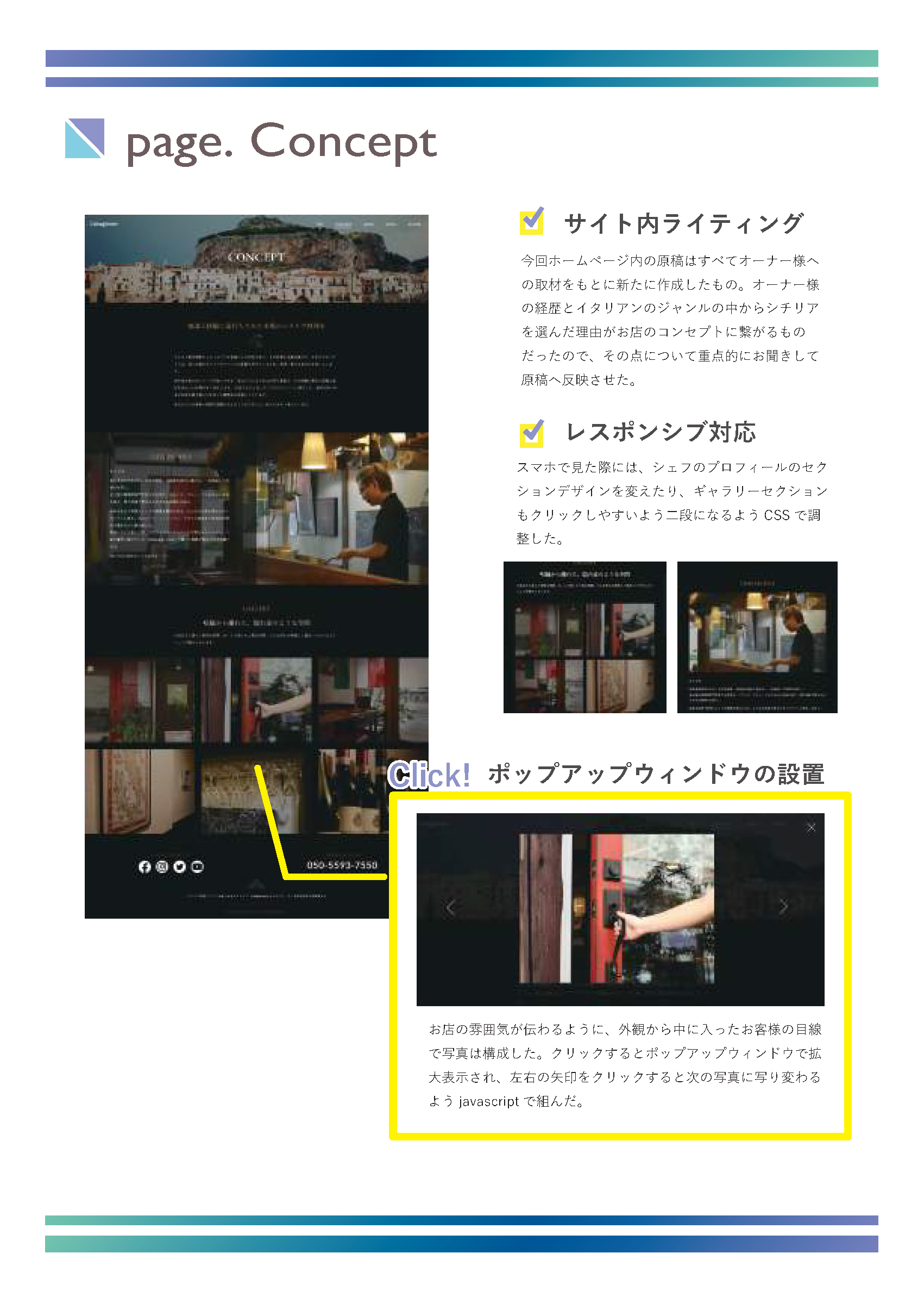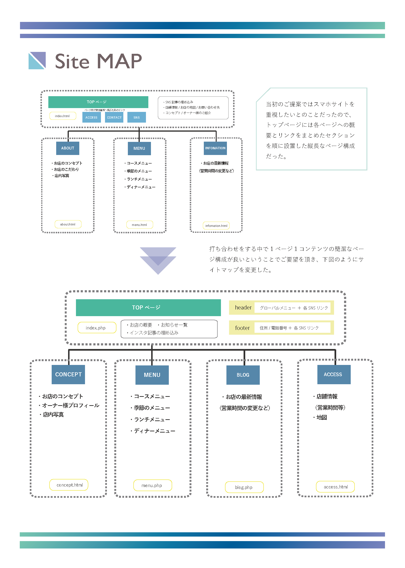 お店のコンセプトであるイタリア南部のシチリア料理をキーワードに、他のイタリアンレストランとの違いが伝わるように工夫死しました。