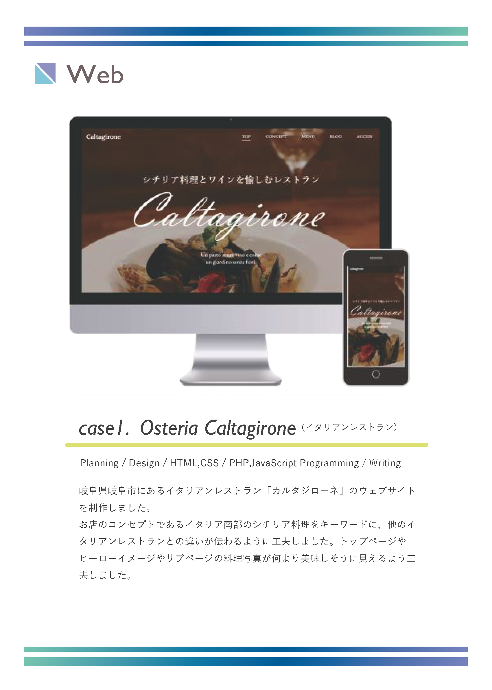 岐阜県岐阜市にあるイタリアンレストラン「カルタジローネ」のウェブサイトを制作しました。